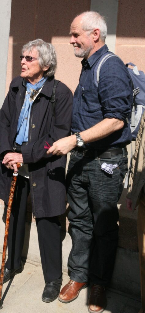 DRONNINGEN av De hvite bussene: Wanda fotografert våren 2015 sammen med sønnen Kim under en minnetilstelning i Sachsenhausen. Foto: Asbjørn Svarstad